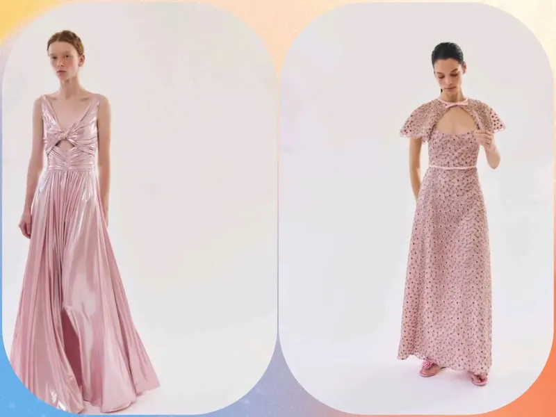 奢華的自然主義還有浪漫復興,在玫瑰裝飾,裙撐造型,廓形晚禮服等設計,在教皇紅、冰淇淋粉、清新蘋果肉🍏綠色等顏色更添色彩潮範兒的浪漫時尚。